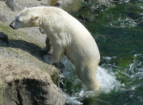 A bathing ice bear in the zoo Hannover.Related content