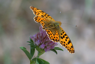 A closeup from a wonderful silver-washed fritillary (germ.: Kaisermantel, lat.: Argynnis parphia) on wild growing oregano at the edge of our forest.The same butterfly: