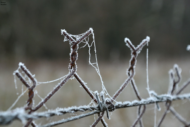 A little ice age in Germany.A forgotten spider web with hoarfrost.