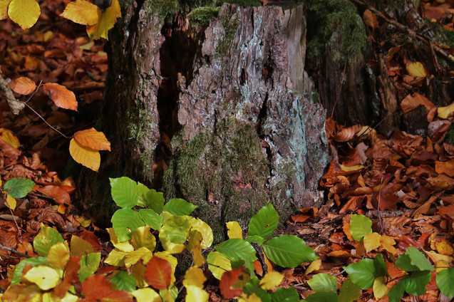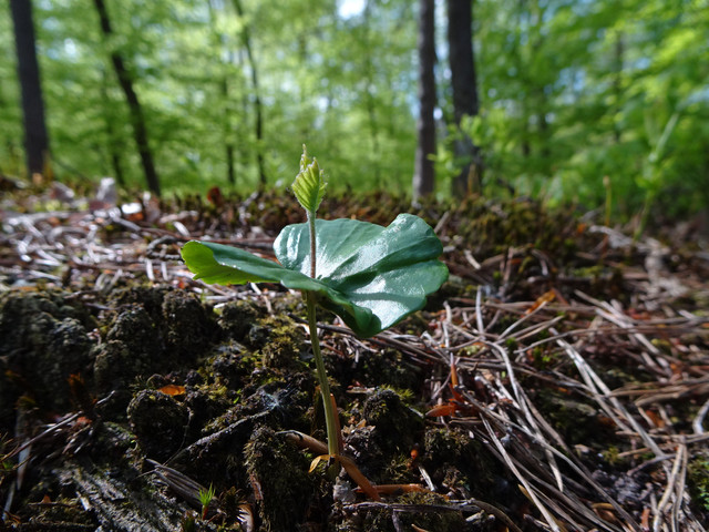To very young and small beeches on the ground of our forest, trying to grow up to the light and loosing there first leaves in autumn.Every big tree was so small and only some of them are able to survive and will getting big! The survival of the fittest!