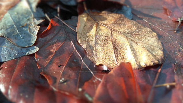 A lot of rain this autumn here and storm. Most of the autmnal leaves is blowing by the wind, the rest is still green.This is from a beech tree.