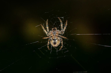 A little spider, a crowned orbweaver(lat.: Araneus diadematus, germ.: Gartenkreuzspinne) in my garden.It's the right time for this silent hunters!