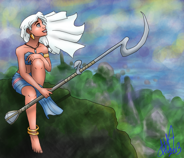 I've been working on this one for a while now and I'm quite happy with the result! Kida is a very cool and different Disney character so I decided to draw her.I kind of cheated with the water using a stencil from here: [link]
