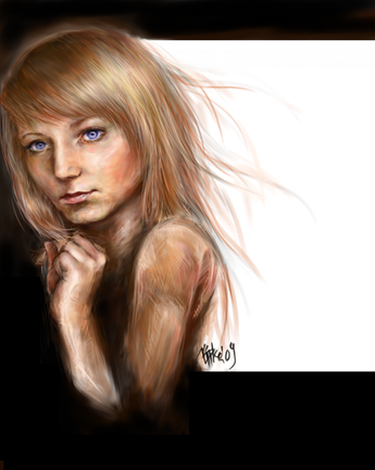 This is beautiful. Your portraits are always mesmerizing, they not only show refined technical skills but also an ability to capture an emotion, a glance, a being in one image. The way you combine these two elements makes all your work truly wonderful and worthy of artistic adoration. I particularly love the dark blue eyes in your recent portraits, they add depth and are totally enchanting. I'm curious do you paint from an observation of a subject or image, or do you paint from your imagination?