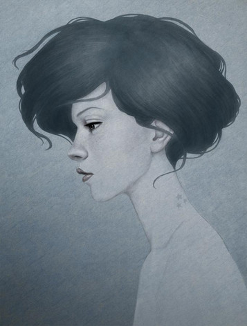 I like the way the depth of the ear (& face) contrast with the flatness of the hair, which itself looks like layered paper...great stuff