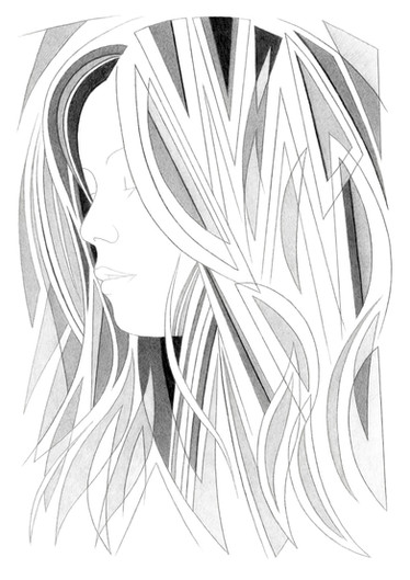 #drawing #eye #girl #hair #monochrome #ornaments #portrait #simple #woman