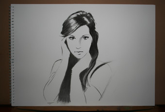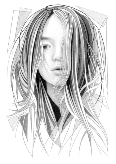 Beautiful, as always, with fascinating attention given to the smoothness of the skin and the delicacy of the features. There may even be hints of the Girl with a Pearl Earring in the sideways glance and the half-open lips... Indeed, the partly veiled face calls to mind the portrait of a hooded maiden from pre-modern times, only given an elegant, contemporary twist.