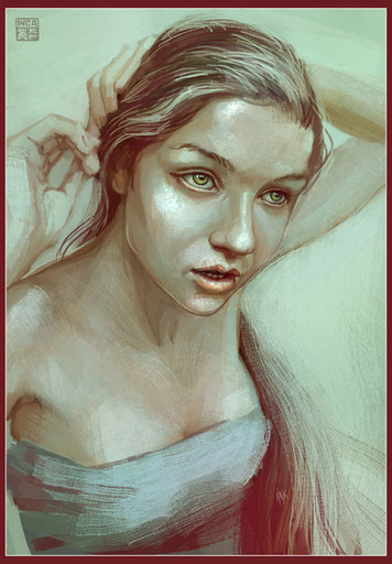 Extremely eye-catching.Β I like how the hair seems to form a logo around her.