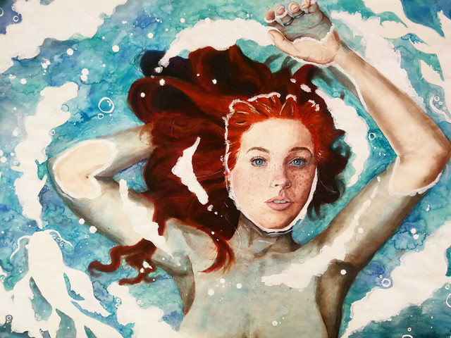 Apart from that, this is lovely, from the composition, her expression, to her hair, the colours, and the fish. I like how this could be mistaken for traditional, too.