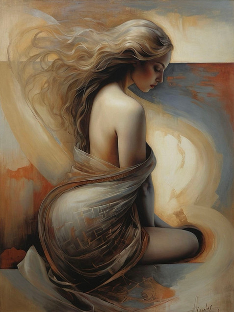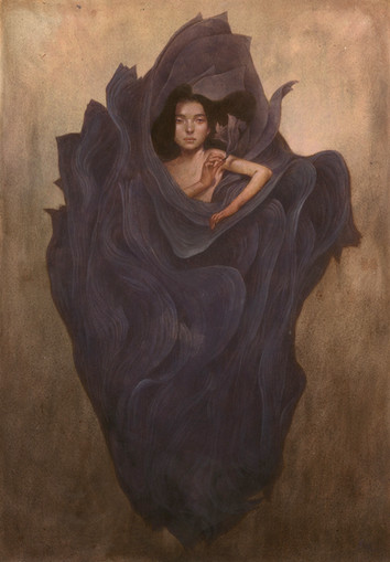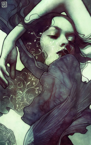 You have an amazing talent and unmistakable style; I so appreciate your ability to softly communicate these enigmatic and poignant portraits, and to craft digital artwork that incredibly looks like gentle watercolor washes or the most delicate colored pencil work! This piece is my favorite, so far, of your displayed works, for her expression, for the wonderful folds of fabric, for the glow that halos her hair. Beautiful. Cheers, Roger