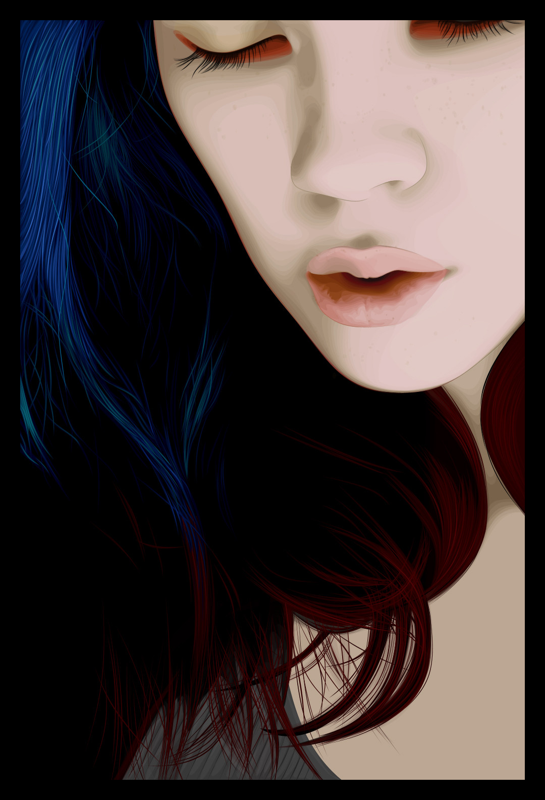 I love the gradient in the hair along with the texture. The lips are drawn so well, something I find difficult to draw well. You have such a nice style. <3