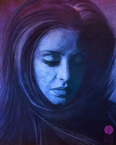 This is really cool, the colors compliment each other and I like the flow of her hair. Also, the only detail being in the lips and eyes draw me to those parts of the picture, giving it a really interesting effect. Great job.