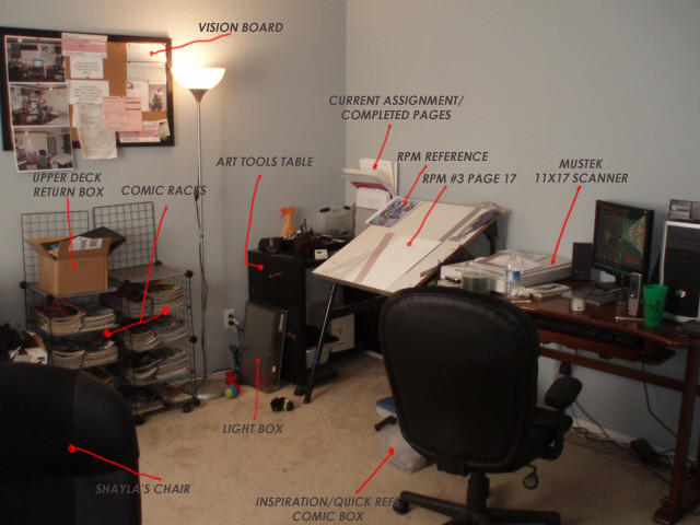 I think that's mostly a concern for traditional painters (and the light would be very problematic as well for traditional painting because the light fixture is that room has a rather orange cast); I haven't heard anything about that being a problem for digital artists. If it does turn out to be a problem, I could just hang white bed sheets to cover up the walls because it's a very small room. Thanks for stopping by and taking the time to comment!