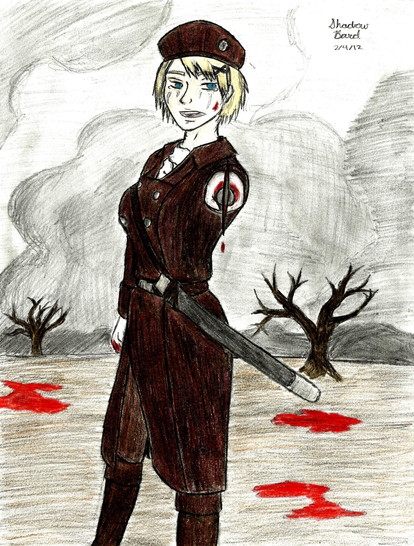 Kiitos. Kun hän tappaa jonkun, hän tekee sen tyylillä XD Niin no, pitkät vaaleat hiukset Kiitoksia, itse en pidä taustasta