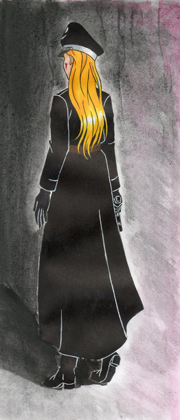 Thank you. I used markers to he uniform, coloured pencil to her face and watercolours to background.