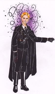 Really interesting stark suit in comparison to the softer shading of her face . Love the white lines, nice work!