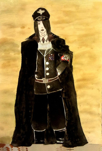 The prisoner hears the sound of boots strutting towards the cell and the jangling of keys as the cell door is unlocked, the prisoner looks up and see the female SS. The prisoner Β wants to make a desperate escape attempt but Β paralised with fright Β is unable to move knowing the female SS is going to kill her prisoner.