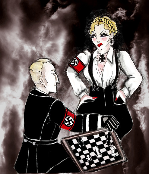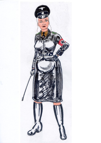 A gorgeous Aryan goddess with a man under her booted feet. Perfect!