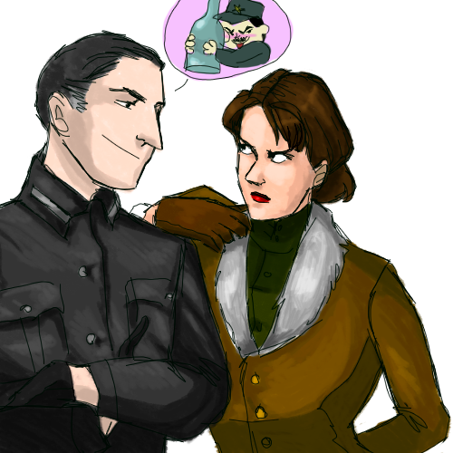 Indeed, because that dark-haired is his friend from childhood and that fair-haired has obsession to him and she's mad nazi