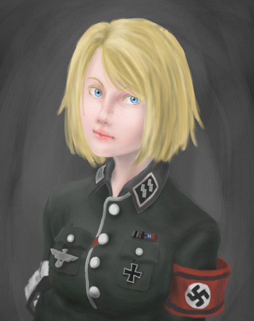 Just a simply b/w sketch from her. She worked in the SS, as a soldier but also as a secretary and Kolbe's personal helper. And she's smiling...I feel sorry for the poor man who falls in love to her gently smile...