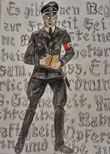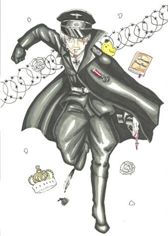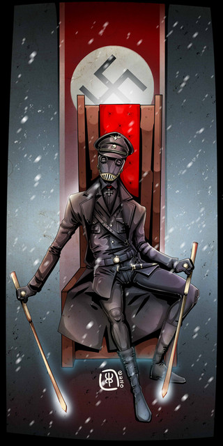 Here we have Kolbe, Bernd and Schultz.Other officers gave Bernd nickname "Kolbe's favourite child" because Bernd was physically and mentally strong, and Kolbe personally liked him (if Kolbe liked someone, it wasn't good thing at all). Since Bernd was a teenager when he became soldier, Kolbe's methods and behaviour made a strong impression to him. Even so much, that he was slightly cannibal.