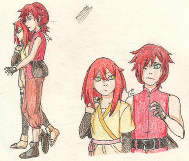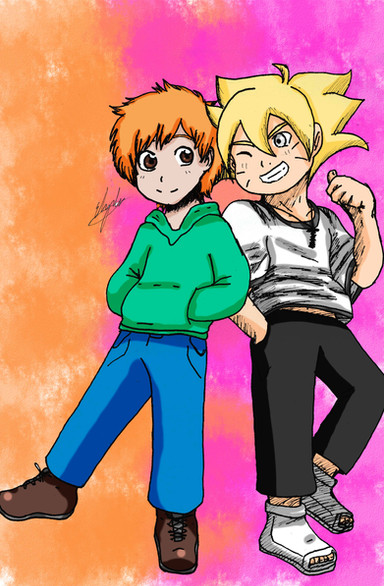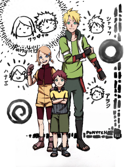 My headcanon is that Arashi would go through the same bullying that his grandmother Kushina did as a child because of their red hair and he isn't much of a fighter like his grandmother so he'd get beaten up but that's why he's got his big sister Hanami to defend him because she's someone you don't want to mess with.- The designs of the narusaku children belong to their rightful creators.