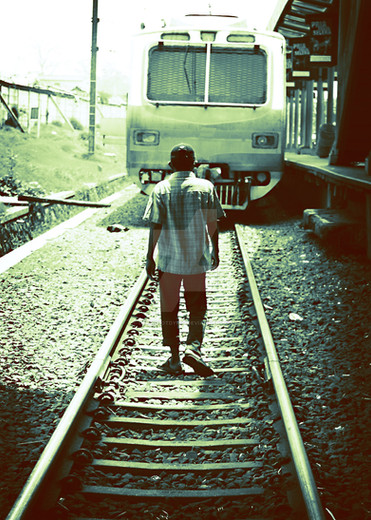 well...this picture show a boy standing on a railway...in my mind he has left home, and now he don't know what he is suppose to do. His entire life wanted to be independent but when he finnaly is he don't know what to do. He can't go back home 'cause there are only lots of problems waiting for him. He is a lonely boy looking for a new life.