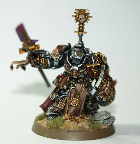 Here's a terminator warlord that I painted up for my Horus Heresy Space Marine Blackshield warband that I painted up over year ago.Related content