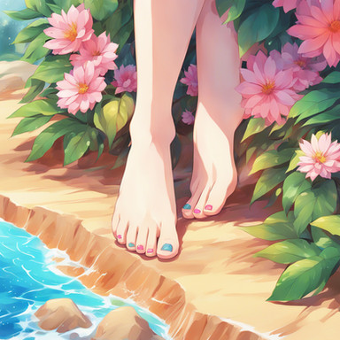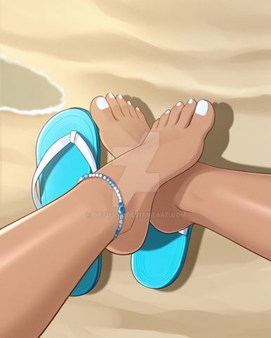 #beach #close #feet #ocean #sand #solo #toenails #toes #up #water #1girl #nail_polish #lens_flare #blue_nails #aqua_nails #green_nails #toenail_polish
