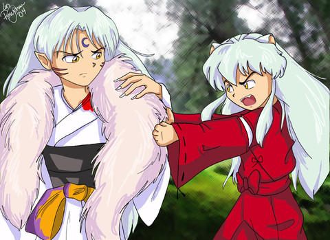 Colouring is gooooooooooood, I especially like how you did Shippo. The hair is nicely lighted, not too much, just enough to show volume, and the same goes to the clothing.