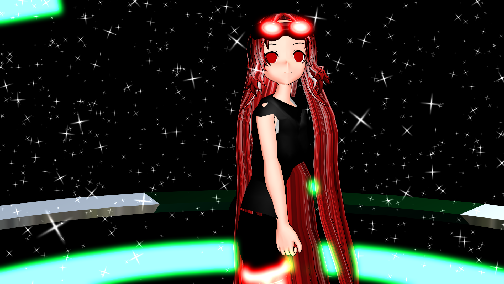 Bio: Chathi is one of the evolved Visual alien race. She is ranked as a surveyor, she goes out into space, traveling through the interstellar highway (Think of Audiosurf when imagining this) and heading to different planets to study the life on them and their behaviors. Her job was determined by the crystal on her chest. The color of the crystal will tell the higher ups what the visual in questions strengths and weaknesses are. Since she is a surveyor, she travels light with little to almost no weapons on her even though she was trained like a soldier. Her crystal is red, reds are the rarest so the surveyors are few in numbers. The crystals shine different colors due to her parents being two different types. She now is on earth, studying humans but she can never understand the ways they live and talk.