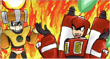 I drew Metalman! Haha!I think Metalman himself looks cool, however I don't like the background... Maybe I'll change it when I get an idea. *Shrugs.*