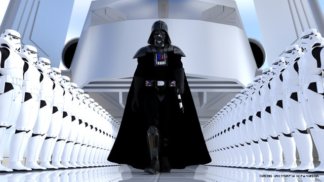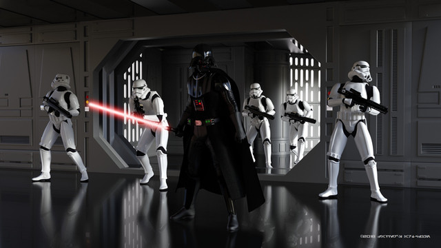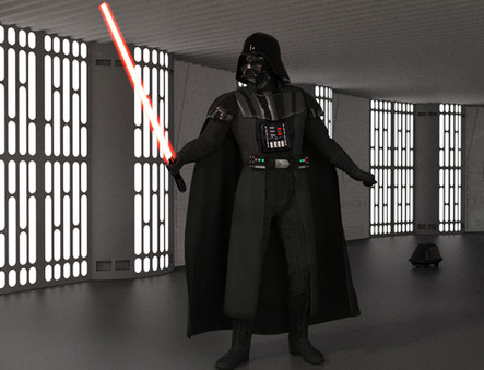 I took me over 1 month deciding what to do (freeze in creativity), 2 days composing the scene, adjusting and applying the textures and lights, 13 hours rendering, and about 2 minutes fixing the lightsaber in postwork.