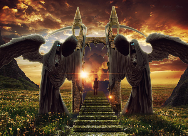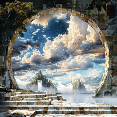 #beyond #birth #city #clouds #death #dream #giant #heaven #island #life #portal #skull #sky #temple