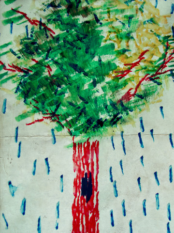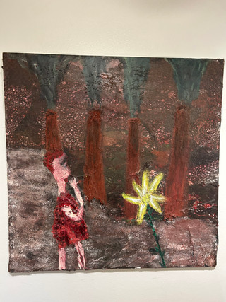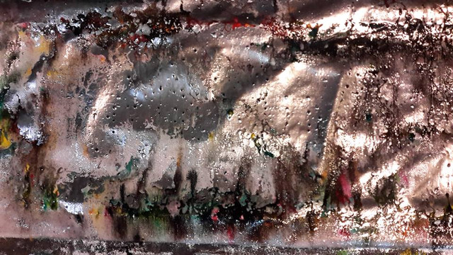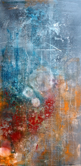 mixed media - steel, paint stone, stone dust paint pigment, oil pastel and stick, acrylic paint, pastel on wood.O2
