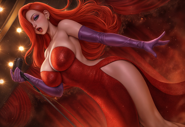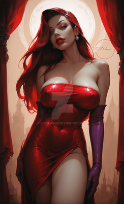 #fanart #redhair #jessicarabbit #digitalart #cartoon #anime #animegirl #bigbreasts #characterillustration #pinup #realistic #redhairedgirl #sexy #wallpaper #jessicarabbitpinup #aiartwork