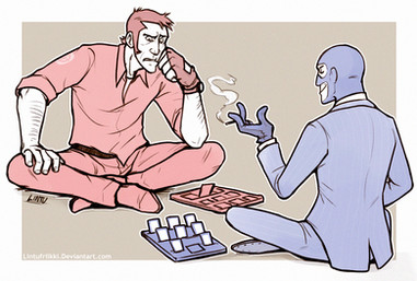 2/6 or 7...Delano vs Daniel as inspired by the King of Spades. Delano is pretty pissed that Daniel's gotten the upperhand on him a few times now and maybe he's a bit jealous that he's seeing Dacey. Daniel dislikes Delano since he's a RED, Spy, and has treated Dacey poorly in the past.