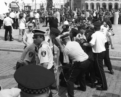 What: Anti-war march from The White House to The Capitol Building where over 160 people were arrested during a mass "die-in". In this photo multiple protesters get arrested for crossing U.S. Capitol Police lines in order to access The Capitol Building.Where: Washington DC