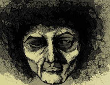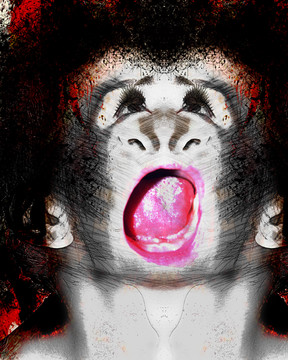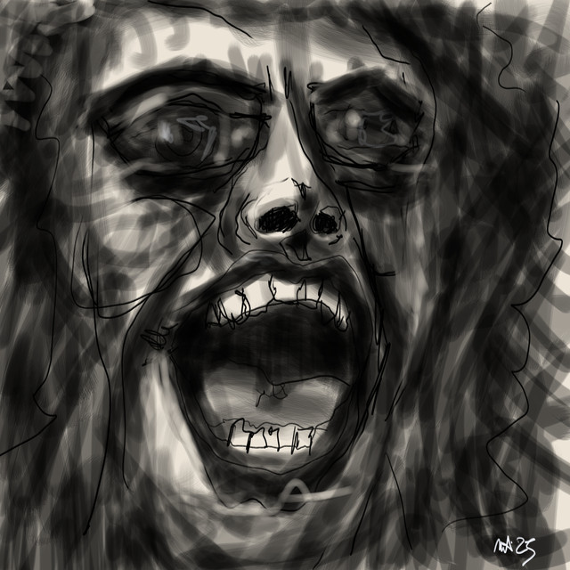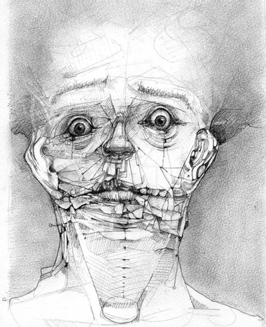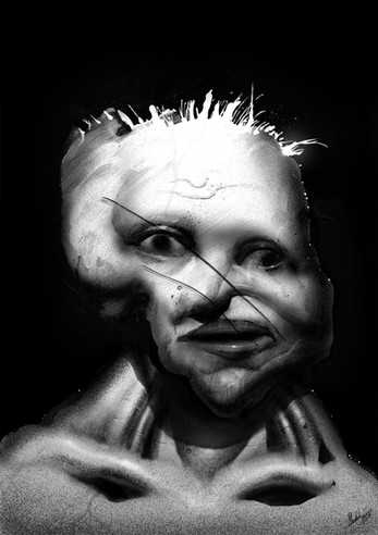 To paint this face and create the effect you see, I used digipaint with a metal structure.