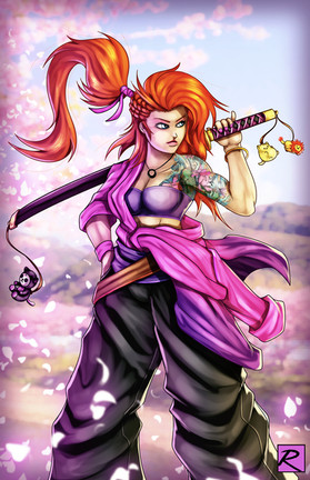 Wow this is sooo cool I love the colors she resembles Luffy from One Piece!