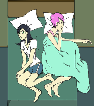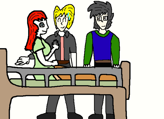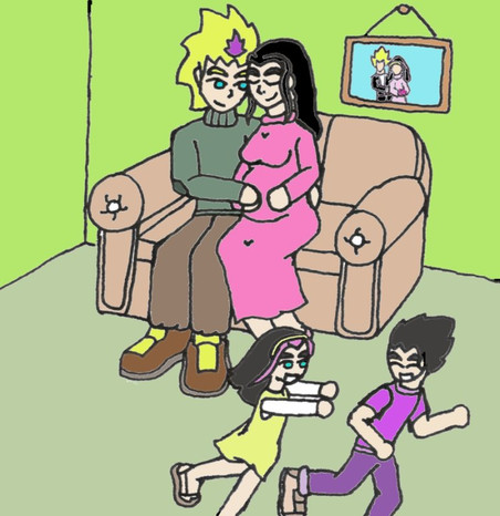 So here it is, with the past on top and the future below, where Jeremie's holding Aelita's hand as they both sit in the hospital and await the birth of their kid.