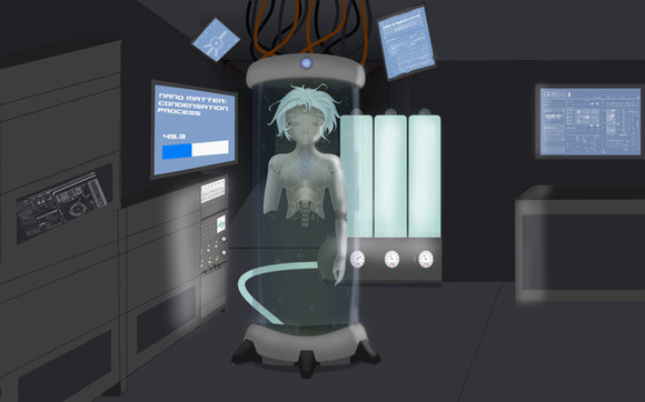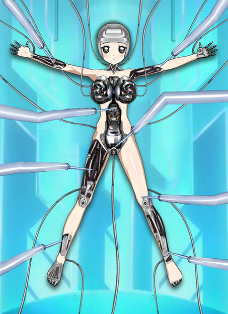 The main idea behind this pic is that Xana, afraid of her own "human" emotions when she's in her organic form, has decided to build this synthetic body in some secret lab somewhere so that she can continue living in the real world, but not be messed about by "mere chemicals" (aka William's hot body).