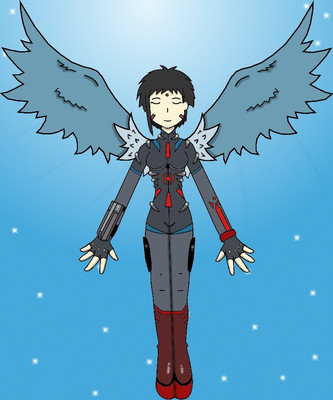 As to make it in a wallpaper...do you allow me to use and alter this image in it? It would be the central piece and I'll create the rest that doesen't shows on your pic. I'll also alter the colors and shading, and add effects, like giving a metalic glow on her body, and a glass glow on the propper places. Of course that you and your friend will be credited. ^^