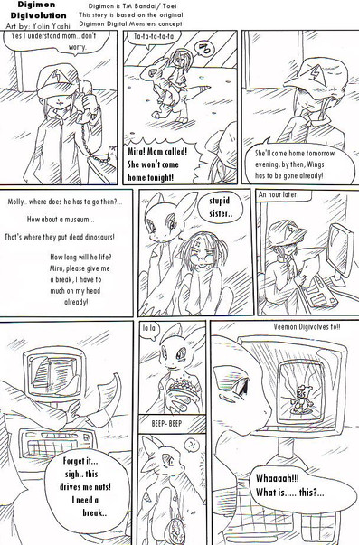 Page 1 for Chapter 2!(Story concept are originally depicted from Digimons. Digivolution is done for the sole purpose of non profit fan works. The art itself is copyrighted to Berryseed)