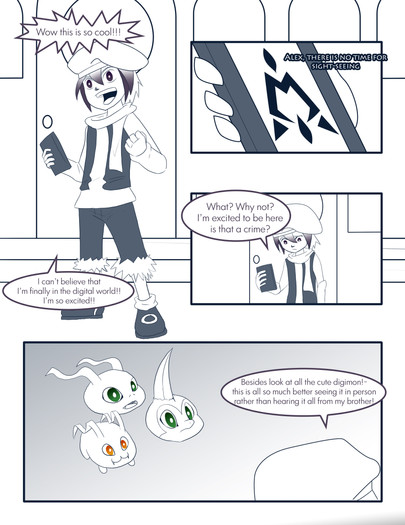 Lets try to make a comic of fan-made characters. Yes I know I tried it before but because the "fan-made" characters weren't looking very "Digimon" like at all, so I stopped it.This time, I made new characters and the story is also different. I know it looks bad, please don't complain about the poor quality comic's I do >< It's the first time trying to use greyscale. (it's faster than doing it fully in color) And I'll probably mess around much more with different way's of drawing the comic.