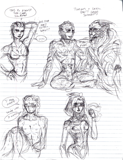 Just something that popped into my head after I took my sleep meds and I had to doodle it out. I had that predator comic I tinkered around with for a little while and the characters were based off my friends and I. So I was thinking of that awkward moment when the character based on me had to explain to her predator the fundamentals of abstinence. Doesn't make for particularly steamy scenarios xD My friend Johnny is also practicing so I look forward to doing his predator's response as well.Predator says: Dis is some bullshit...