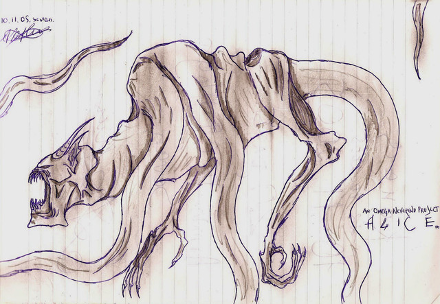 Amazingly, when I show people my current work, they seem to like this critter the best. One person even remarked that it looked plant-like, which it is supposed to be. But I think it looks like a giant booger.Anyhow, the Instance. No real reason for the name, it just popped to mind. I have to stop doing that. Somewhat inspired by Gravemind from Halo, but nowhere near as big, smart, and generally nifty. I think Instance ended up being a closer relative to Audrey II. (If you haven't seen "Little Shop of Horrors", go see it.)
