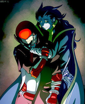 lol, probably @ the shading thing. It does look flat. Again, I'll go back and fix it one day in the future, and post the fixed version to compare. o_o One day. *Shakes fist at sky.* Just you wait! *Clears throat.* Actually, unfortunately, if this were a drawing from the game instead of RP, they wouldn't be a couple at all. Tseng loves her, but she doesn't love him back. >>; Besides, he's a Turk, and the Turks are supposed to be kidnapping her.. So it's really strange and kinda twisted, and sad if you're like me and like Tseng. --; I should color it. He's actually dying. There's a slash moving down his chest diagonally, but you can't see it unless you look.