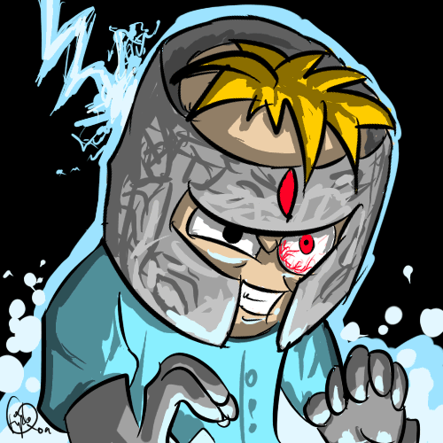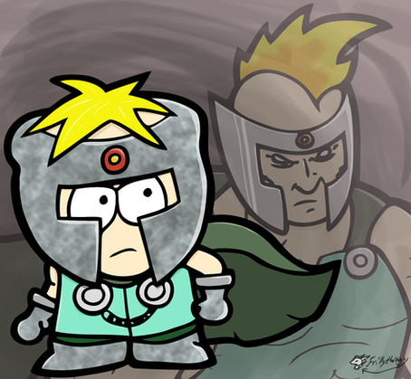just for kicks. shatterstar butters was a natural because of the names and the headgear which is so much like butters as chaos. i was gonna do him as cannonball and call him 'butterball'