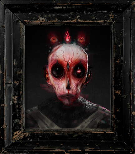 whoaa, beautiful texture and depth in the face! the arrangement of abstract objects feels creepy and luxurious at the same time also good job on the lighting! it really adds to the atmosphere~